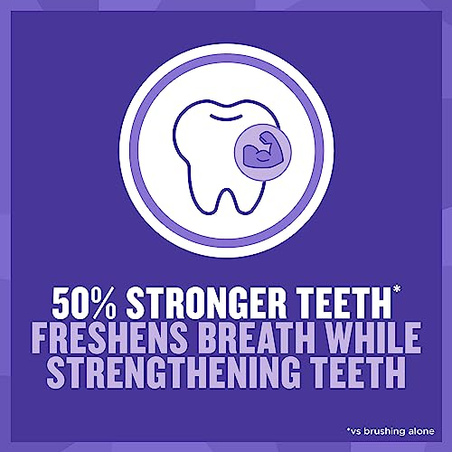 Give your mouth complete care with ADA-accepted Listerine Total Care Fluoride Anticavity Mouthwash. This Fresh Mint-flavored mouthwash for bad breath provides six dental hygiene benefits in one powerful oral rinse & up to four times the fluoride uptake versus Act,* & provides 50% greater strengthening of weakened enamel vs. brushing alone in lab studies. The fluoride-rich oral rinse formula helps prevent cavities, restores enamel, & strengthens your teeth to improve oral health. Use remineralizing mouthwash to freshen breath, kill germs that cause bad breath, & clean your whole mouth. This oral rinse is accepted by the American Dental Association’s (ADA) Seal of Acceptance Program & features a fresh mint flavor that gives your mouth a clean feeling you can taste. *In laboratory tests compared to Act Total Care Anticavity Fluoride Rinse.