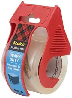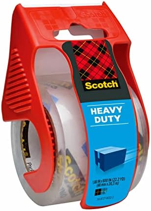 About this item PACKING TAPE: 1 roll of Scotch Heavy Duty Shipping Packing Tape with a dispenser for convenient application offers excellent holding power for your holiday packing and shipping needs INDUSTRIAL-STRENGTH ADHESIVE: Industrial-strength, solvent-free adhesive adheres instantly to lock in the heavy-duty contents of your boxes and lock out everything else, even through rough handling conditions FOR ALL BOX TYPES: Box tape that works on all types of boxes, including harder-to-stick 100% recycled boxes, letting you ship your holiday gifts with confidence JUST ONE STRIP NEEDED: Shipping tape that resists slivering, splitting and tearing to keep your boxes sealed with just one strip on each seam IDEAL FOR: Clear adhesive tape for shipping Christmas presents, as well as for sealing boxes of decorations for storage when the holidays are over USE WITH TAPE DISPENSER: Dispenser (included) provides precise cuts and features fall-back tabs to help ensure tape doesn’t fall back on the roll, keeping it ready for the next use DURABLE THICKNESS: Typical thickness 3 mil